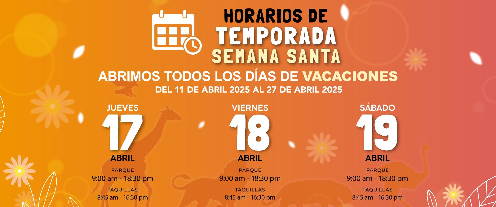 En temporada vacacional y días feriados del 2025 abrimos TODOS los días para que vengas a vivir la aventura más salvaje en familia 🐾🌿